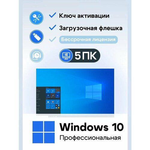 Найти - Ключ активации Microsoft Windows 10 Pro, бессрочный, с загрузочной флешкой, 5 ПК