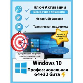 Найти - Флешка установочная, Microsoft Windows 10 с 1 ключом, 64+32 бит в 1, с активацией