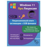 Флешка установочная с лицензией Microsoft Windows 11 Pro и ключом активации. Данный комплект подходит для установки системы на новое устройство, а также для активации установленной системы. Вы получаете лицензионный ключ активации Windows 11 Pro на 1 ПК, а также контакты технической поддержки и видео инструкции.