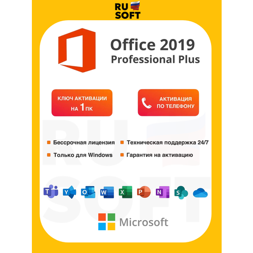 Оригинальная лицензия microsoft, Вам не придётся переживать за подлинность продукта. Microsoft Office бессрочный, активируется на 1 ПК, не требует продления как microsoft office 365. Офисный пакет 2019 совместим с Windows 10, 11. Microsoft office 2019 pro plus включает в себя набор офисных приложений c обновленным функционалом: Word, Excel, PowerPoint, Outlook, OneNote, Access, Publisher. В комплекте - Office 2019 про плюс Майкрософт лицензионный майкрософт офис ключ и ссылка для загрузки установочного пакета, инструкция по установке. Код активации - это отличный способ выгодно купить MS Office без переплаты за упаковку.