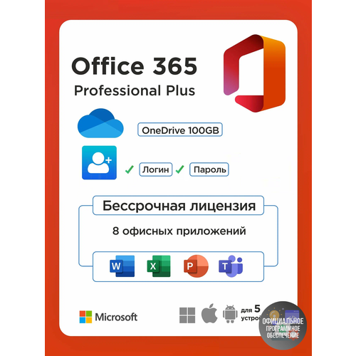 Программное обеспечение Майкрософт Офис 365 профессиональный плюс (про +) включает в себя учетную запись и пакет офисных приложений, таких как: