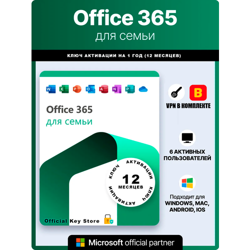 Найти - Microsoft Office 365 для семьи (12 месяцев / ключ привязывается к учетной записи / мультиязычный)