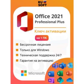 Бессрочная лицензия Microsoft Office 2021 Professional Plus (про +) оригинальный электронный ключ активации для 1 ПК (Активация лицензии по телефону