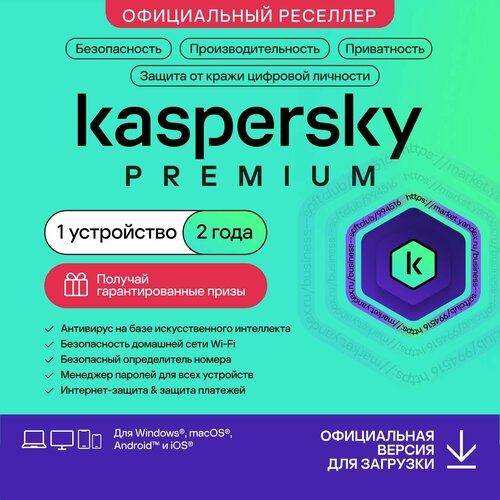 Kaspersky Premium — самое полное решение для сохранения цифровой безопасности и защиты всех ваших устройств без снижения их скорости При покупке Вы получаете ключ для активации личного кабинета пользователя. Ключи и инструкция для активации антивируса и подарочный сертификат находятся внутри личного кабинета пользователя и доступны после его активации.