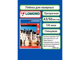 Пленка для лазерной печати Lomond А3 прозрачная односторонняя для цветных лазерных принтеров (50 листов) 100 мкм (0703315) 101580200731