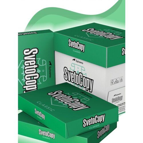 - Бумага а4 500 листов Svetocopy - стандарт качества для офисной техники и среди канцелярских товаров. Офисная белая бумага А4. Высококачественная белая бумага а4 подходит для любых принтеров, как лазерных, так и струйных, для любых видов оргтехники и листовых факс аппартов. Характеристики офисной бумаги а4 Svetocopy: белизна 146%, плотность листа 80 г/м2. Бумага Svetocopy А4 белая. Svetocopy производится в России. Бумага А4 Светокопи белая. Бумага А4 Svetocopy подходит как для офиса ( принтера, документов ), так и для дома ( рисования ). Поставка представляет собой укреплённую коробку из 500 листов , чтобы бумага доехала до Вас в целости. Бумага А4. Среди прочих офисных принадлежностей, бумага А4 является основным канцелярским товаром. Упаковки 500 листов хватит как для нужд печати на принтере документов, так и для рисования. Svetocopy явлется наиболее востребованной маркой офисной бумаги А4.