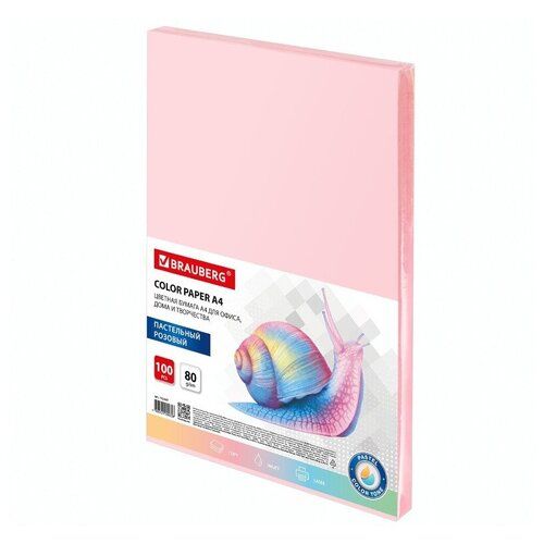Бумага BRAUBERG 112447, комплект 5 шт. Бумага цветная BRAUBERG, А4, 80 г/м2, 100 л, пастель, розовая, для офисной техники, 112447Цветная бумага BRAUBERG предназначена для использования в офисе и дома. Идеально подойдет для офисной техники, оформления писем и приглашений, в качестве разделителей для архивации, а также для детского творчества (изготовления поделок и аппликаций). Упакована в пачку из 100 листов формата А4. В упаковке бумага пастельного тона розового цвета. Листы бумаги плотностью 80 г/м2 подходят для офисной техники. Поставляется в упаковке «полибэг» (Polybag), которая представляет собой прочный прозрачный полиэтиленовый конверт, надежно защищающий бумагу при транспортировке. С одной стороны полибэг имеет заклеивающийся клапан, что предоставляет возможность многократно открывать и закрывать упаковку. Формат: А4. Плотность: 80 г/м2. Количество листов в пачке: 100. Количество цветов в пачке: 1. Тон: пастельный. Оттенок: розовый. Класс: нет. Высокая стойкость к выцветанию: да. Количество пачек на палете: 1000 шт Бренд - BRAUBERG. Производитель - Россия. . Штрихкод - 4606224299358Характеристики упаковки: Вес: 0,5160 кг. Объем: 0,0010 м3. Размеры: 1x29,8x21,3 см.