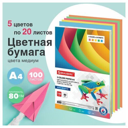 Внимание[Бумага цветная BRAUBERG, А4, 80 г/м2, 100 л, (5 цветов х 20 л.), медиум, для офисной техники, 112462] X 30 шт.