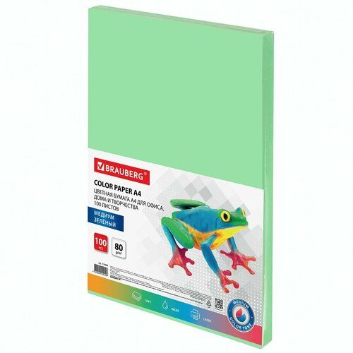 Найти - Бумага цветная А4 Brauberg, медиум зеленая, 80 г/кв. м, 100 листов (112458), 5 уп.