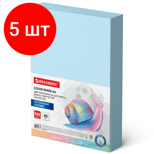 Найти - Комплект 5 шт, Бумага цветная BRAUBERG, А4, 80 г/м2, 500 л, пастель, голубая, для офисной техники, 115218