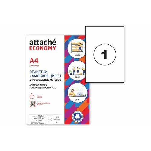Самоклеящиеся универсальные этикетки Attache Economy (Выбор есть) рекомендованы для персональных и низкоскоростных принтеров (до 20 стр/мин) с полистной подачей в печать. Не рекомендуется использование на ПВХ поверхностях. Белизна не менее 98%. Для оформления и печати этикеток удобно использовать шаблон, который можно скачать по QR коду на лицевой стороне упаковки. Для того чтобы увидеть разлиновку шаблона, необходимо в ПО Word открыть вкладку ’Макет’ и щелкнуть ’Отобразить сетку’. Для удобства работы с рисунками: выделить вставленный в шаблон рисунок левой кнопкой мыши, открыть вкладку ’Формат’ и выбрать режим ’Обтекание текстом — По контуру’.