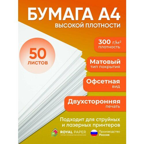 Найти - Бумага офсетная А4, плотная 300 гр/м2, белая, 50 листов - подходит для печати, принтера, рисования и творчества