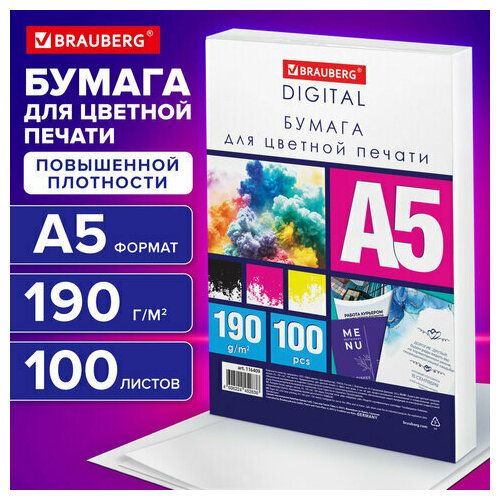 Найти - Бумага для цветной лазерной печати А5, плотная 190 г/м2, 100 л, BRAUBERG DIGITAL, 145% (CIE), 116409