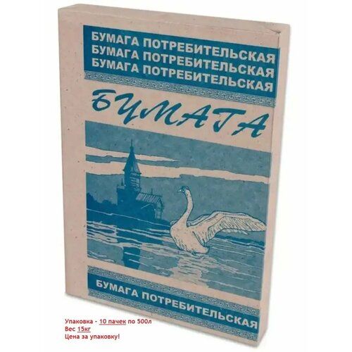 Бумага потребительская (писчая) производства АО "Кондопожский ЦБК" (Республика Карелия). Формат А4, пачка 500л, заводская упаковка 10 пачек. Вес бумаги 45 г/м кв, вид газетная. Бумага изготовлена на комбинате АО "Кондопожский ЦБК", функционирующем с 1933г.