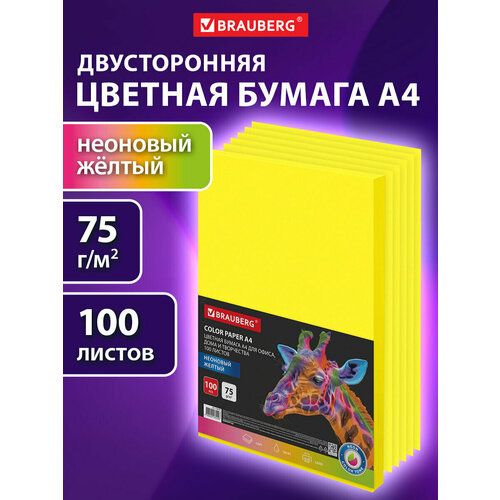 Найти - Цветная бумага для принтера, школы А4 желтая набор 100 листов, двусторонняя для печати, оригами, скрапбукинга 75 г/м2, Brauberg, 116670