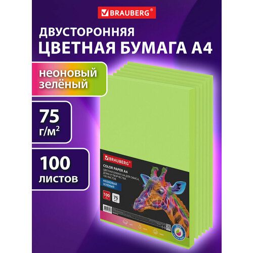 Найти - Цветная бумага для принтера, школы А4 зеленая набор 100 листов, двусторонняя для печати, оригами, скрапбукинга 75 г/м2, Brauberg, 116671
