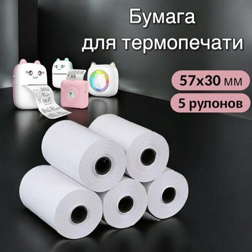 Найти - Термобумага для мини принтеров, чековая бумага для термопечати, комплект из 5 рулонов, 57x30, белая