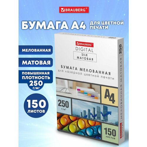 Найти - Бумага А4 для принтера белая мелованная матовая, набор 150 листов для полноцветной лазерной печати, плотная 250 г/м2, Brauberg Digital Silk, 116564