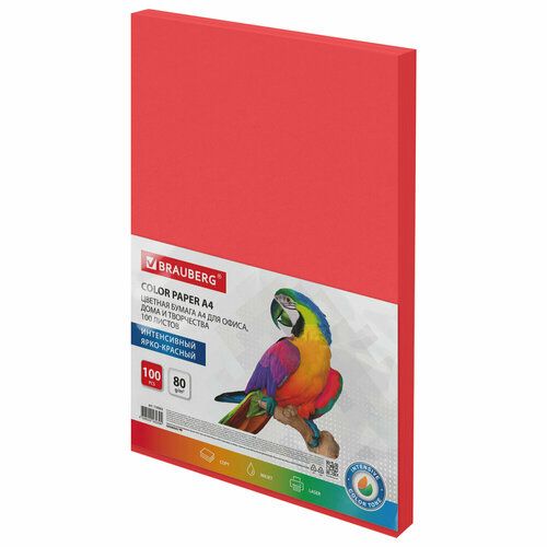 Найти - Бумага цветная BRAUBERG, А4, 80 г/м2, 100 л, интенсив, ярко-красная, для офисной техники, 116562