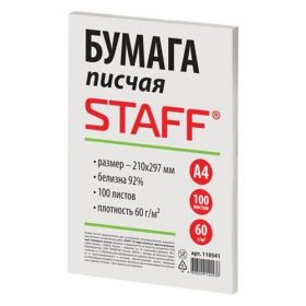 Бумага писчая STAFF используется для письма вручную, рисования, для широкого круга канцелярских задач, а также для изготовления печатной продукции на матричных принтерах, ризографах, малых печатных машинах.