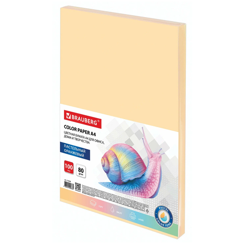 Бумага цветная для принтера офисная Brauberg, А4, 80 г/м2, 100 листов, пастель, оранжевая, для офисной техники, 112448 101303668821