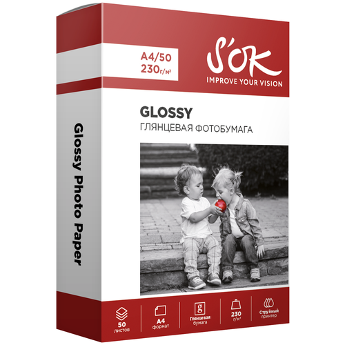Найти - Бумага S'OK A4 Glossy 230 г/м², 50 л, белая