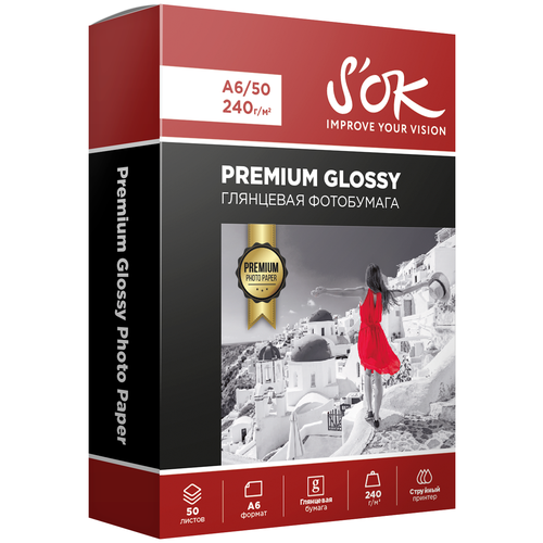 Найти - Бумага S'OK A6 Premium Glossy 240г/м², 50 л, белая