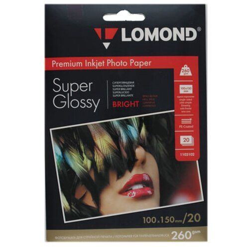 Найти - Бумага Lomond 1103102 Суперглянцевая ярко-белая (Super Glossy Bright) микропористая фотобумага для струйной печати, A6, 260 г/м2, 20 листов.