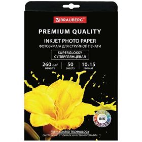 Суперлянцевая односторонняя фотобумага премиум качества BRAUBERG обеспечивает студийное качество фотографий. Предназначена для печати на всех типах струйных принтеров. Имеет микропористое покрытие, обеспечивающее мгновенную впитываемость и высыхание чернил. Технология RC идеально передает яркие, насыщенные цвета с множеством оттенков. Формат фотобумаги - 10х15 см, плотность - 260 г/м2, 500 листов в картонной упаковке. Совместима с пигментными чернилами и чернилами на водной основе. Формат: 10х15. Тип поверхности: суперглянцевая. Плотность: 260 г/м2. Технология печати: для струйной печати. Количество листов в упаковке: 500 Бренд - BRAUBERG.