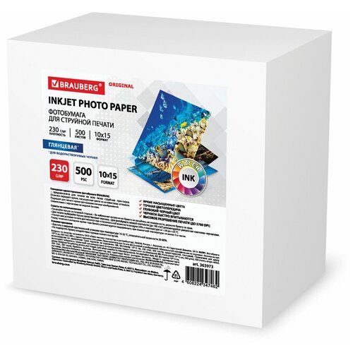 Найти - Фотобумага глянцевая / бумага для печати фото на струйных принтерах, 10х15 см, 230 г/м2, односторонняя, 500 листов, Brauberg Original, 363973
