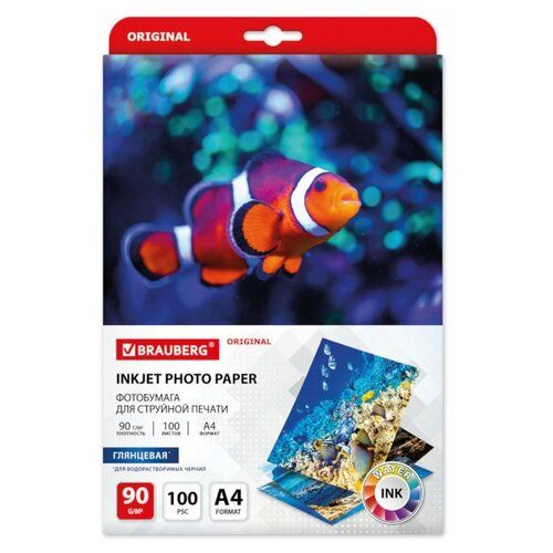 Найти - Фотобумага глянцевая / бумага для печати фото на струйных принтерах, А4, 90 г/м2, односторонняя, 100 листов, Brauberg Original, 363978