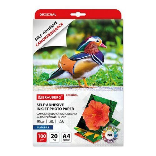 Найти - Фотобумага самоклеящаяся матовая / бумага для печати фото на струйных принтерах, А4, 100 г/м2, 20 листов, Brauberg Original, 364006
