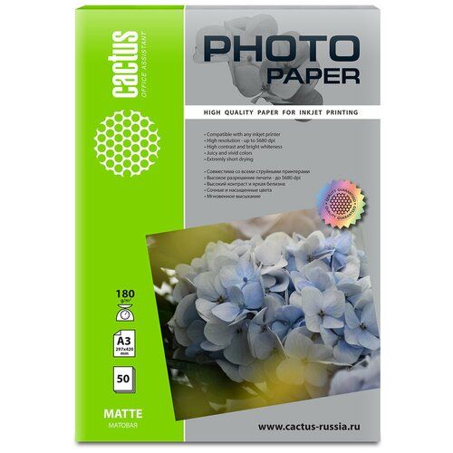 Найти - Фотобумага Cactus 50 листов A3 (29.7x42 см) Матовая 180 г/м2 CS-MA318050