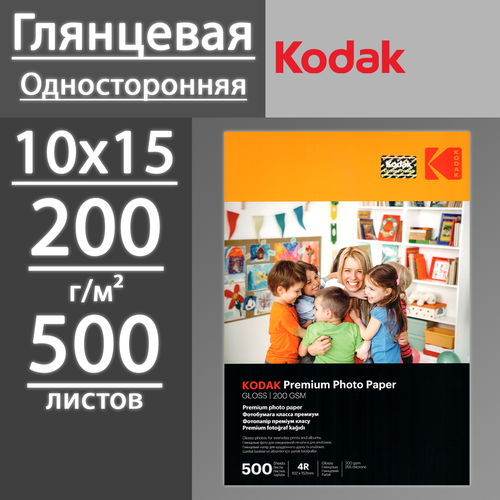 Фотобумага Kodak глянцевая, формат 4R (102х152мм), плотность 200г/м2 по 500 листов.