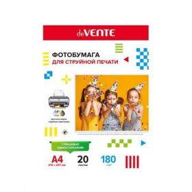 Найти - DeVENTE Фотобумага A4 для струйных принтеров deVENTE 180 г (20 листов), глянцевая, односторонняя, в пластиковом пакете с европодвесом