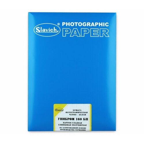 Фотобумага «Унибром 160» общего назначения для контактной и проекционной печати. Нейтрально-черный тон изображения, высокая белизна подложки. Возможно как холодное, так и горячее глянцевание. Производитель: Славич, Россия.