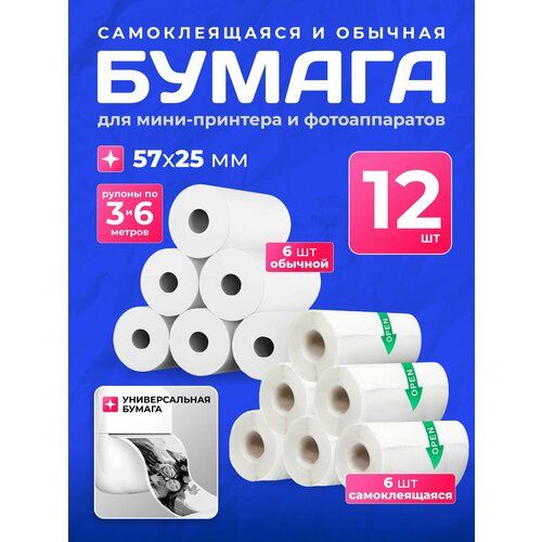 Тип: термобумага (6 самоклеящихся + 6 обычных рулонов)