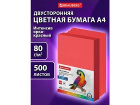 Бумага цветная для принтера офисная BRAUBERG, А4, 80г/м2, 500 листов, интенсив, ярко-красная, 116563 4300458573