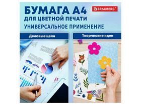 Бумага цветная BRAUBERG, А4, 80 г/м2, 100 л, (5 цветов х 20 л.), медиум, для офисной техники, 112462 943849221
