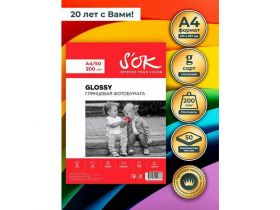 Фотобумага A4 глянцевая, плотность 200 гр, 50 листов, SOK 102431914663