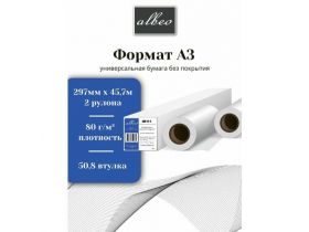 Бумага для плоттеров А3 универсальная Albeo InkJet Paper 297мм x 45,7м, 80г/кв. м, Z80-11-2 101188974190