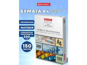 Бумага А4 для принтера белая мелованная матовая, набор 150 листов для полноцветной лазерной печати, плотная 300 г/м2, Brauberg Digital Silk, 116565 103833965276