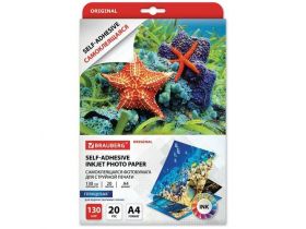 Фотобумага самоклеящаяся глянцевая / бумага для печати фото на струйных принтерах, А4, 130 г/м2, 20 листов, Brauberg Original, 364007 101806566641