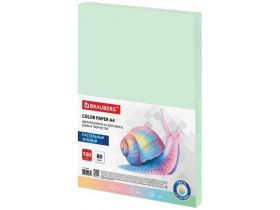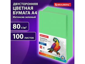 Бумага цветная BRAUBERG, А4, 80 г/м2, 100 л, медиум, зеленая, для офисной техники, 112458 943816136
