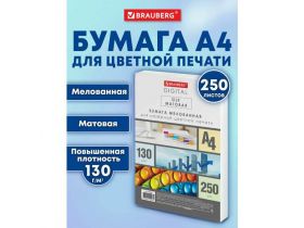 Бумага А4 для принтера белая матовая, набор 250 листов для цветной лазерной печати, плотная 130 г м2, 130% CIE, Brauberg Digital Silk, 116396 103710152689