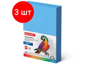 Комплект 3 шт, Бумага цветная BRAUBERG, А4, 80 г/м2, 500 л, интенсив, синяя, для офисной техники, 115214 102652894796