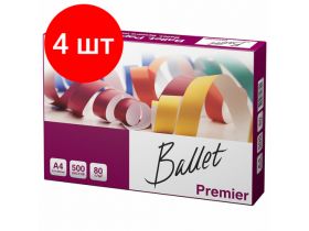 Комплект 4 шт, Бумага офисная А4, 80 г/м2, 500 л, марка А, BALLET PREMIER, ColorLok, 162% (CIE) 102653005973