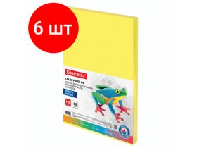 Комплект 6 шт, Бумага цветная BRAUBERG, А4, 80 г/м2, 100 л, медиум, желтая, для офисной техники, 112454 102652939061