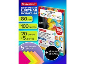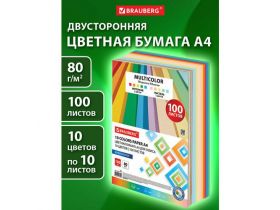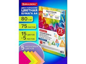 Цветная бумага для принтера, школы А4 набор 15 цветов 75 листов (15 цветов x 5 листов), двусторонняя для печати, оригами 80 г/м2, Brauberg Multicolor, 116647 4494104395