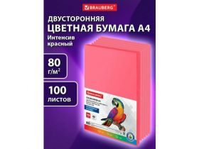 Бумага цветная BRAUBERG, А4, 80 г/м2, 100 л, интенсив, ярко-красная, для офисной техники, 116562 4367126642